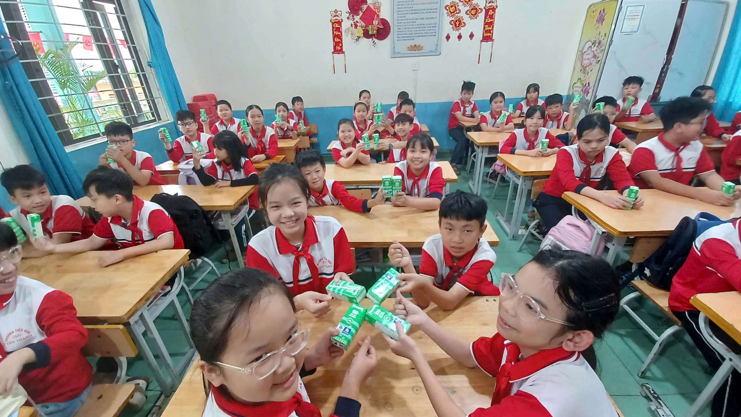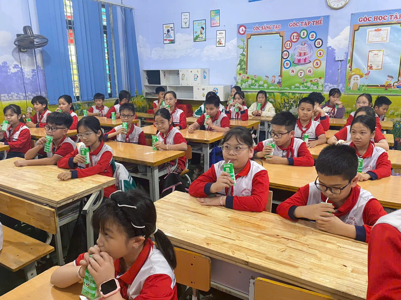 Hôm nay, ngày 09/03/2026 trường Tiểu học và Trung học cơ sở Uông Bí triển khai cho học sinh uống sữa tại 02 điểm trường ( Điểm trường Tiểu học Yên Thanh và Điểm trường TH&THCS Điền Công). Các em học sinh khối Tiểu học trong toàn trường đã bắt đầu được uống sữa. Loại sữa uống là sữa tươi nguyên chất Vinamilk; dung tích 180ml/ngày/học sinh, được hưởng những hộp sữa tươi – mát lành, an toàn và giàu dưỡng chất từ chính sách nhân văn của tỉnh nhà để thế hệ trẻ được phát triển toàn diện; đủ đức, đủ tài, đủ sức khoẻ để học tập và dựng xây quê hương đất nước.
